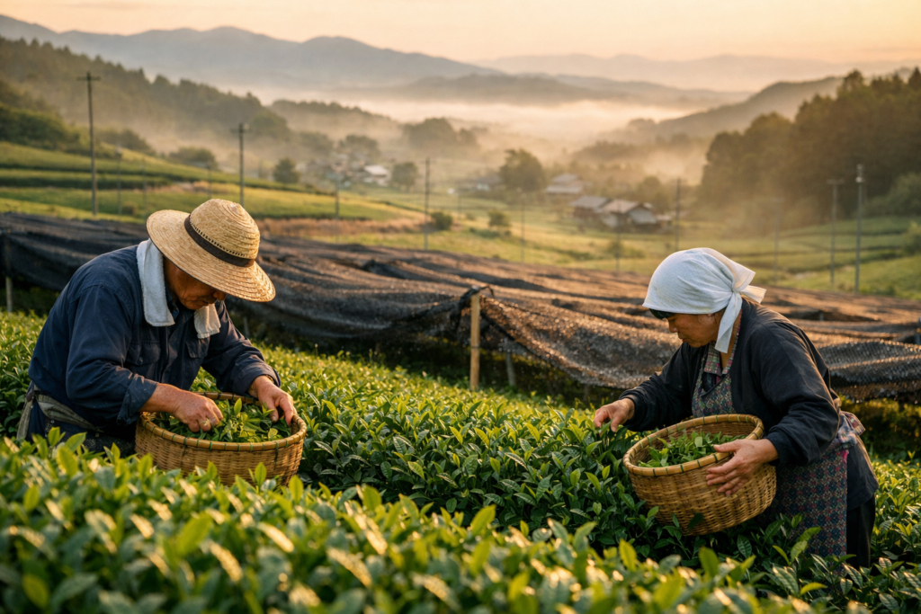 Region Yame w prefekturze Fukuoka to miejsce legendarne. Specyficzny mikroklimat – chłodne poranki i gęste mgły znad rzeki Chikugo – tworzy naturalną barierę przed słońcem, co pozwala krzewom herbacianym rozwijać niezwykłą słodycz.