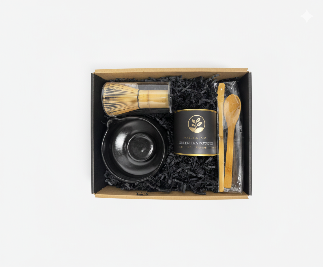 Poznaj ekskluzywny Zestaw Matcha Premium, który pozwala przygotować prawdziwą, japońską matchę w domowym zaciszu. W zestawie znajdziesz najwyższej jakości Matcha Green Tea Powder, klasyczną miskę Chawan, tradycyjną bambusową trzepaczkę Chasen, bambusową łyżeczkę Chashaku oraz kusenaoshi – ceramiczną podstawkę chroniącą kształt chasena. Całość zapakowana w eleganckie, czarne pudełko z okienkiem – idealne na prezent premium.